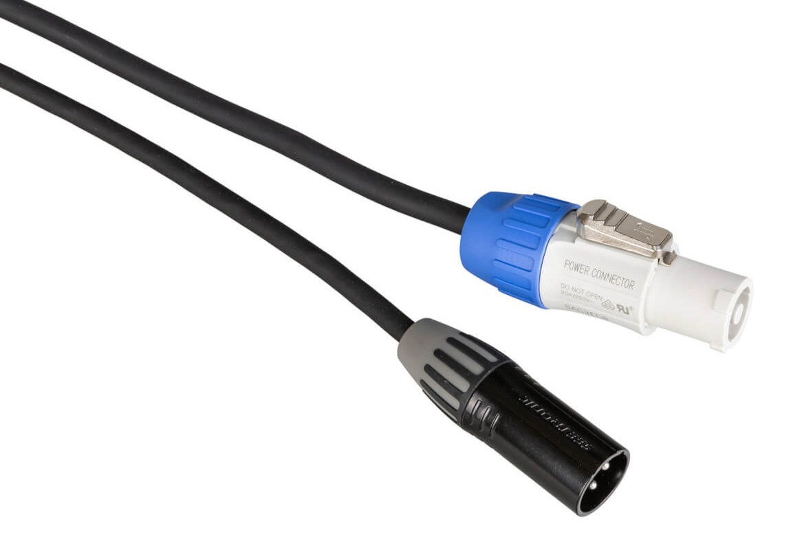Il permet de transporter simultanément l’alimentation électrique et le signal DMX dans un seul câble, réduisant le nombre de câbles sur scène et simplifiant l’installation.