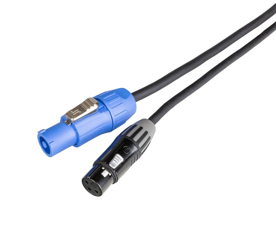 Il combine l’alimentation électrique et le signal DMX dans un seul cordon, simplifiant le câblage sur scène.