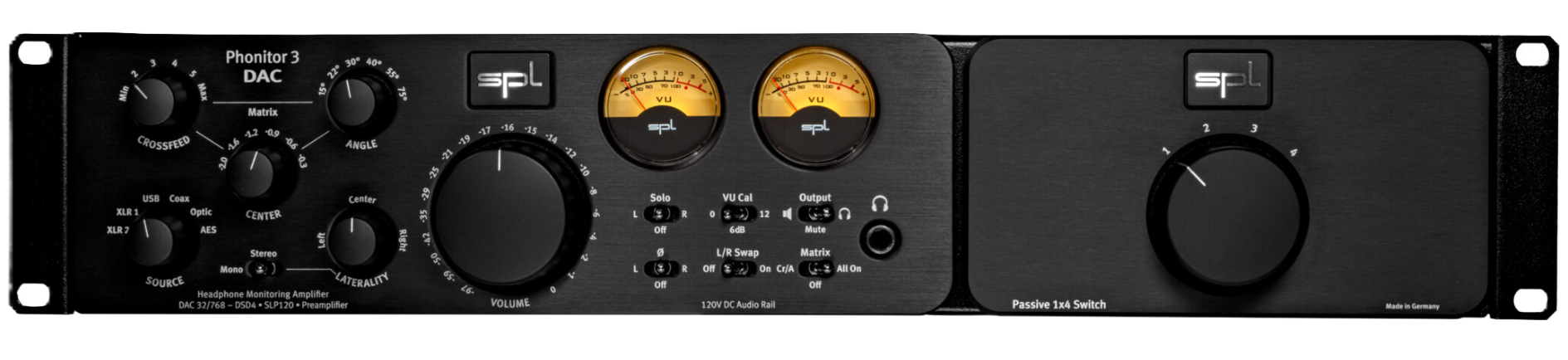 Grâce à ses quatre sorties stéréo, le SPL Expansion Rack transforme un simple DAC en contrôleur de monitoring polyvalent. Il devient ainsi possible de travailler avec des configurations trois voies ou d’utiliser plusieurs paires d’enceintes selon les besoins du mix. L'utilisateur bénéficie d’un contrôle rapide et fiable, sans altération du signal.