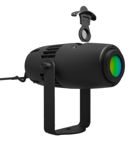 Son boîtier dispose de fixations adaptées aux structures scéniques ou supports muraux, ce qui le rend adapté à des utilisations permanentes ou éphémères. Idéal pour des événements, vitrines saisonnières ou projections temporaires.