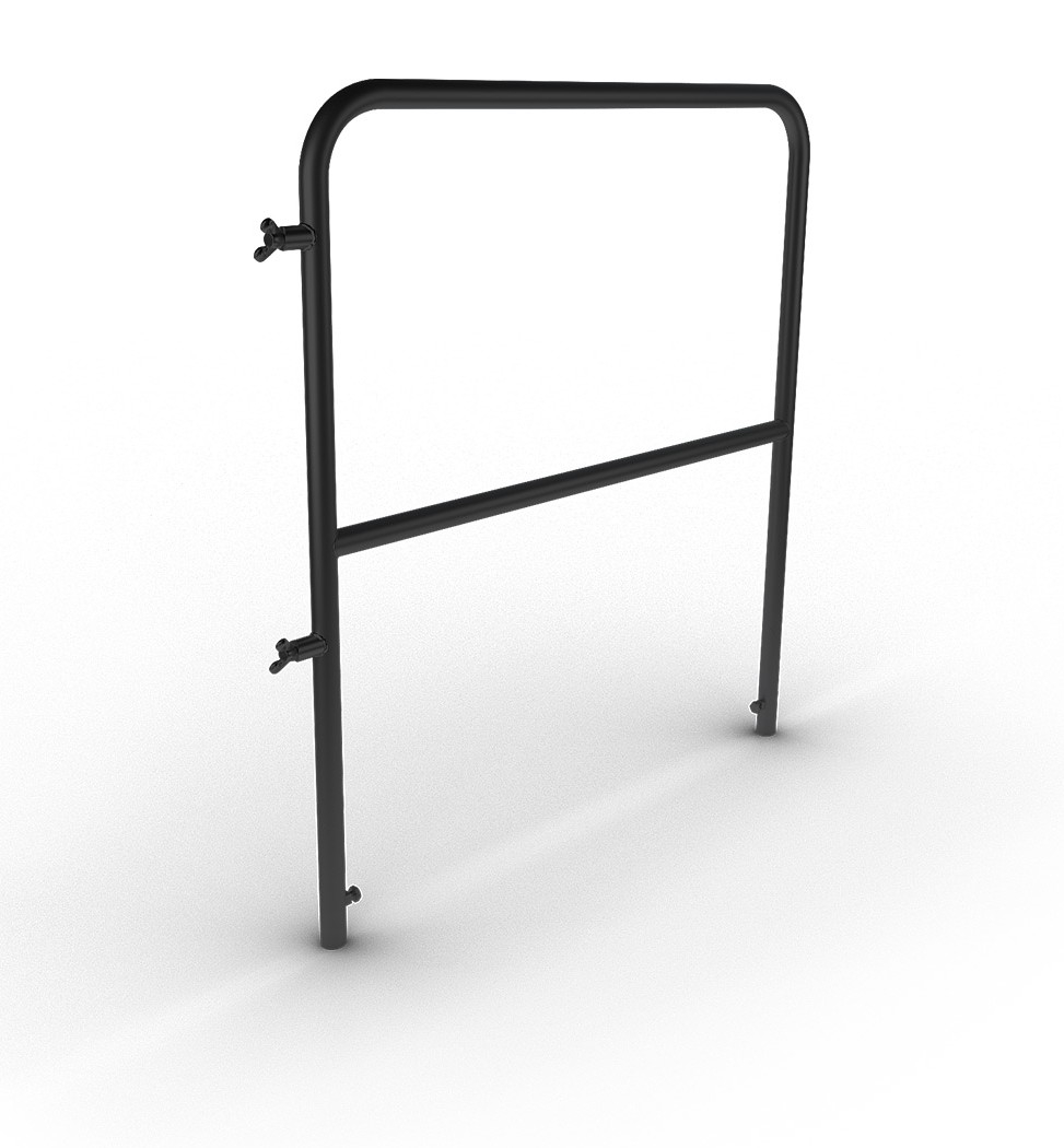 La longueur de 1 m constitue le second repère essentiel. Dans une configuration modulaire, cette mesure permet de positionner le garde-corps en fonction de la section à équiper. Elle sert aussi à harmoniser le choix des composants lorsque plusieurs éléments doivent être répartis sur une plateforme. La finition noire complète cette logique d’intégration en apportant une continuité visuelle avec un environnement de scène ou de structure technique.