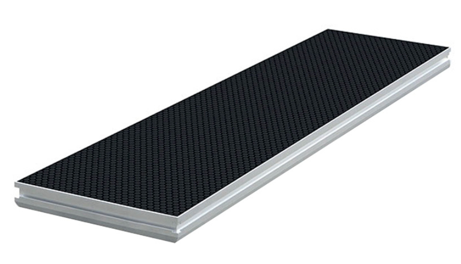Le revêtement antidérapant améliore l’adhérence sur le dessus du plateau et participe à la sécurité d’usage lors des déplacements sur scène. Sur un praticable destiné à accueillir du passage, du matériel ou des intervenants, cette caractéristique réduit le risque de glissement par rapport à une surface lisse. Elle prend encore plus de sens dans des conditions variables, par exemple en montage, en démontage ou lors d’une utilisation ponctuelle en extérieur. Associée au plateau en multiplis de 12 mm et au cadre en aluminium, cette surface répond à une logique de fiabilité d’exploitation. C’est un point concret à considérer pour les techniciens, régisseurs et utilisateurs professionnels.