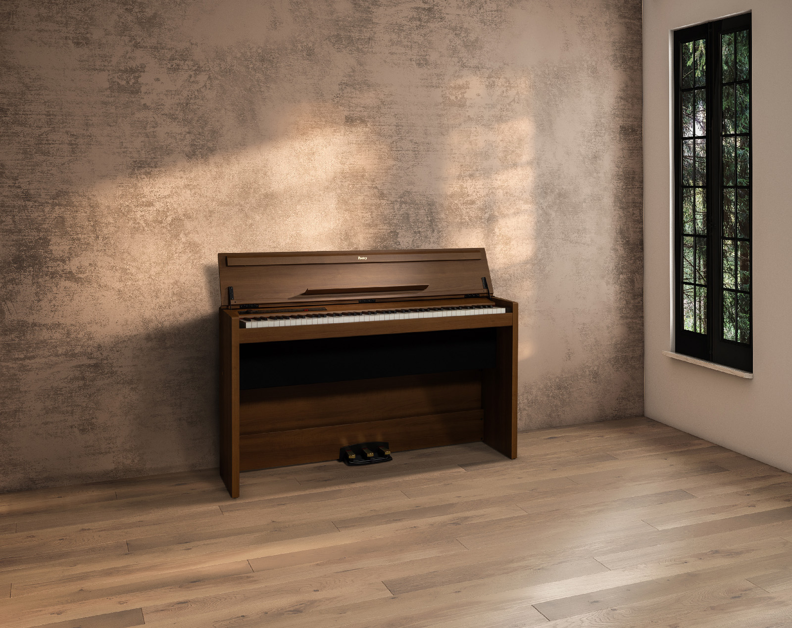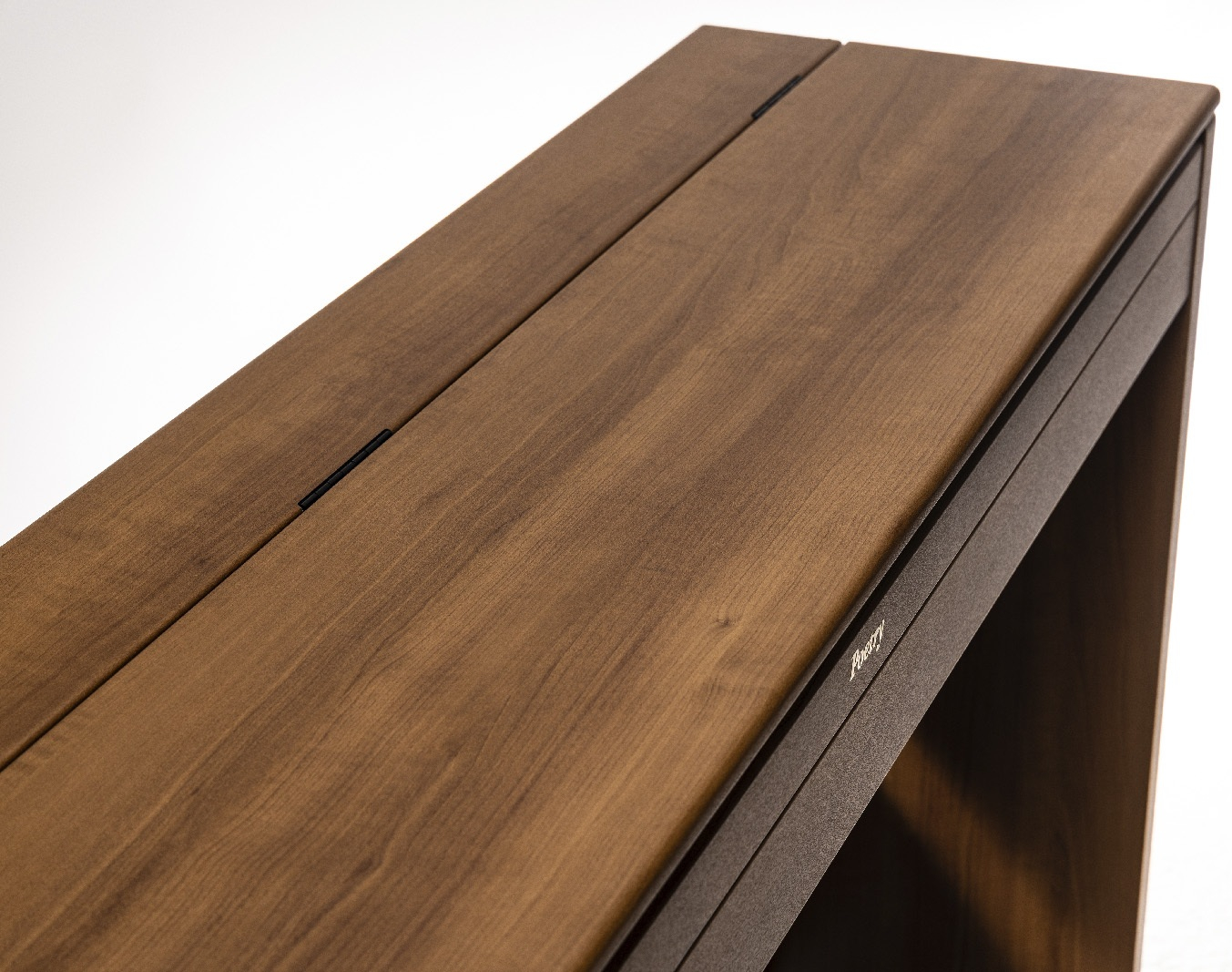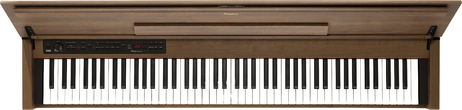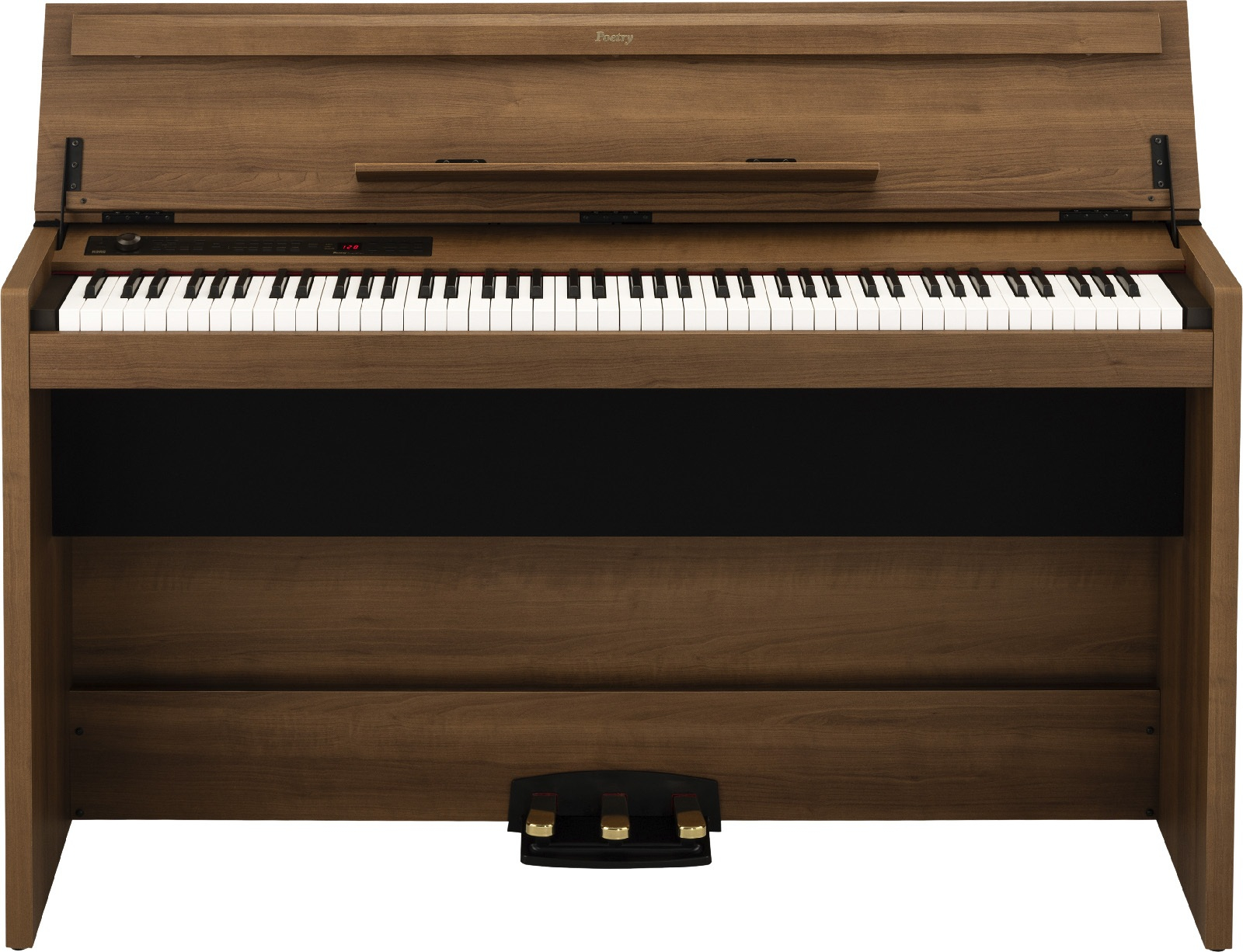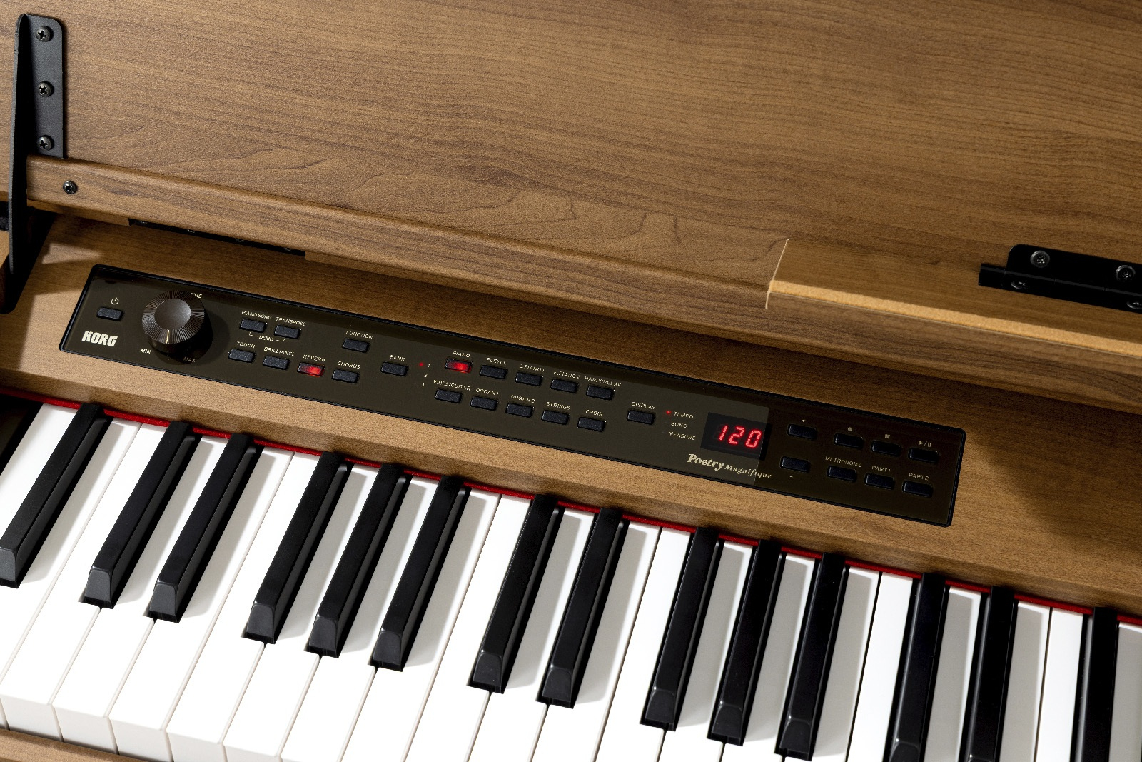 Le Korg Poetry Magnifique est conçu comme un meuble musical harmonieux. Sa finition en bois brun et ses lignes sobres s’intègrent facilement dans tout intérieur, qu’il s’agisse d’un salon, studio ou salle de musique. Il est livré avec un stand et une triple pédale, assurant stabilité, esthétique et fonctionnalité dès l’installation.