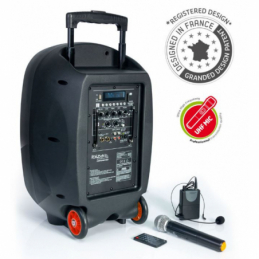 Ce système de sonorisation portable présente une qualité sonore exceptionnelle. Muni d'une batterie rechargeable intégrée de 4500mAh, ce système vous assurera une autonomie de plus de 5 heures. Son trolley rétractable et ses roues en polyuréthane à roulement à billes vous permettent de l'emmener partout avec vous. Ses micros sans fil UHF professionnels (de main et tête) ainsi que sa télécommande vous offrent une polyvalence et une liberté de mouvement optimales. Sans oublier sa facilité d'utilisation grâce à son affichage rétroéclairé. Ce système très polyvalent sera très utile dans de nombreuses situations : associations sportives, danse, bars, terrasses, orateurs, présentation d'entreprises, chanteurs et musiciens à l'extérieur comme à l'intérieur. Grâce à ses nombreuses entrées et sorties USB/SD/Ligne/Micro, le multi source couvrira tous vos besoins.