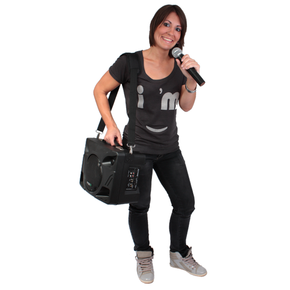 Système de sonorisation portable dans un boitier ABS surmoulé, facile à transporter et à utiliser absolument partout même en l'absence d'une alimentation électrique.