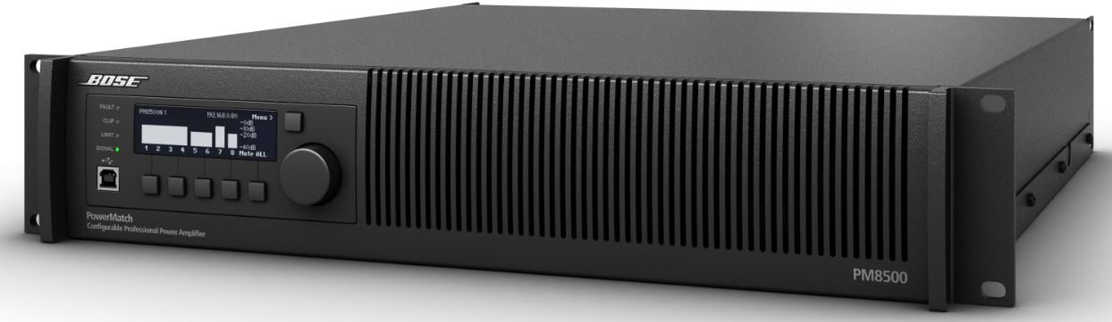 L'amplificateur de puissance professionnel configurable Bose® PowerMatch PM8500N offre un son de qualité concert avec un haut niveau d'évolutivité et de configurabilité pour les systèmes de sonorisation à installation fixe. La mise en réseau basée sur Ethernet permet la configuration, le contrôle et la surveillance, et un connecteur d'extension prend en charge l'entrée des cartes accessoires audio numériques en option. Les amplificateurs PowerMatch utilisent de nombreuses technologies Bose pour offrir une combinaison sans précédent de performances, d'efficacité et de facilité d'installation, le tout dans une conception exclusive et fiable.