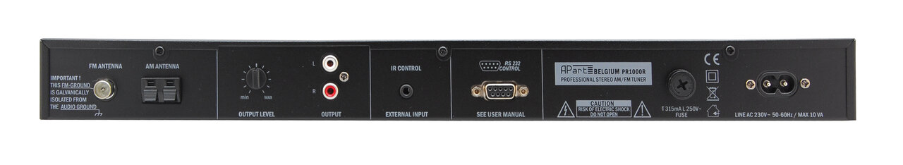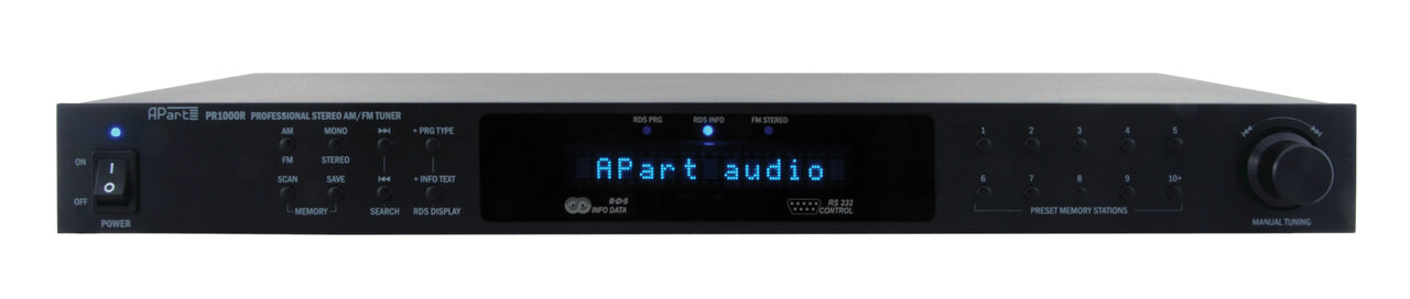 Le Apart Audio PR1000R est un tuner AM/FM au format 1U rack conçu pour une intégration simple et efficace dans tout système audio professionnel. Grâce à sa syntonisation automatique haut/bas et ses 40 présélections mémorisables, il facilite la sélection des stations. L’appareil peut être commandé via sa façade, une télécommande IR ou des contacts Euroblock, offrant ainsi une grande flexibilité d’installation. Sa sortie audio ajustable permet d’harmoniser le volume avec les autres sources. Le PR1000R intègre un tampon de signal actif pour antenne FM, une séparation galvanique des connexions sensibles et une technologie de suppression adaptative du bruit. Il est livré avec une antenne AM, un isolateur FM et une télécommande, garantissant compatibilité, confort d’usage et performance radio dans des environnements variés.