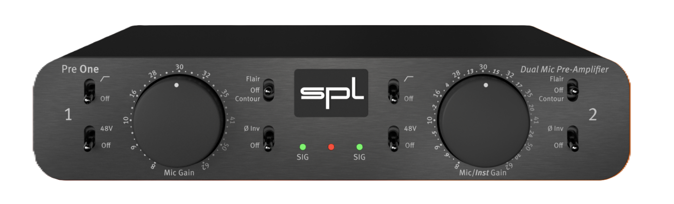 Chaque canal du SPL Pre One est équipé de deux préréglages d’égalisation analogiques : Flair et Contour. Activables indépendamment, ces filtres permettent d’optimiser le timbre de la voix ou d’un instrument selon le contexte de mixage.