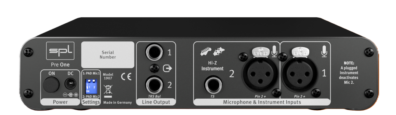 Le SPL Pre One a été conçu pour gérer les microphones à faible sensibilité ou forte impédance, grâce à une plage de gain élevée (+8 à +62 dB) et une très faible distorsion même en amplification maximale. Les deux canaux intègrent également une alimentation fantôme de +48 V activable indépendamment pour les micros à condensateur.