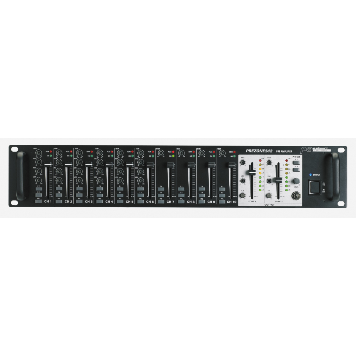 Mixer Audiophony PREZONE642 10 entrées et Préampli 2 zones 2 Zones totalement indépendantes 6 Entrées micro et 4 entrées ligne Affichage du niveau par zone et par entrée Alimentation 24 V de sécurité