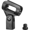 Le PRO41 est livré avec un ensemble d’accessoires pratiques : pince AT8470 Quiet-Flex™, adaptateur de filetage 5/8" à 3/8", et étui de transport souple. Ces éléments facilitent l'installation, le transport et l’intégration dans tout setup audio.