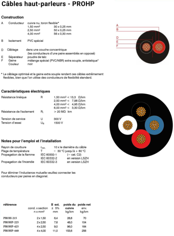 Grâce à sa section de 2 x 1,5 mm², le PROHP-215 est parfaitement adapté pour alimenter des haut-parleurs dans des contextes variés : scènes, théâtres, installations fixes ou systèmes mobiles. Cette dimension de câble permet une excellente stabilité du signal tout en limitant la résistance sur de longues longueurs.