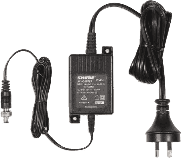 Le SHURE PS43E délivre une tension de sortie de 15 V en courant continu. Cette valeur est spécifiquement adaptée aux récepteurs et émetteurs Shure compatibles afin d’assurer leur bon fonctionnement.