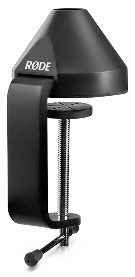 Le Rode PSA-1+ est livré avec un serre-joint de bureau qui permet de l’installer sans perçage. Ce système est idéal pour une fixation temporaire ou sur des bureaux où l’insert fileté n’est pas possible.