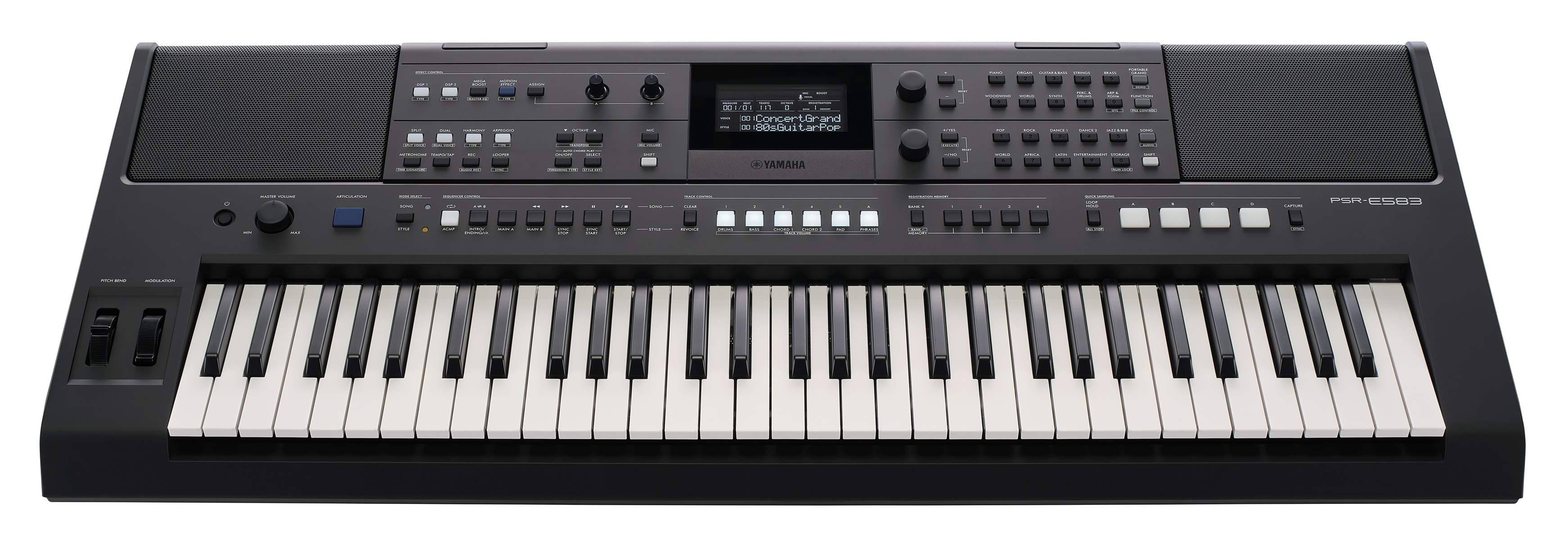 Le PSR-E583 offre une amplification plus puissante (12 W + 12 W), une molette de modulation supplémentaire et des fonctionnalités avancées comme l’enregistreur audio USB. Il convient mieux à un usage scénique ou à des musiciens recherchant un contrôle expressif accru.