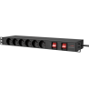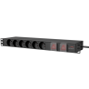 La Caymon PSR269FSB est une multiprise secteur 19" de haute qualité avec 15 prises françaises, idéale pour les racks et boîtiers conformes aux normes ANSI/EIA RS-310D, DIN41491 et IEC60297, offrant une gestion de la puissance de 250 V CA ~ 16 A / 4 000 W, un boîtier en aluminium noir, et un câble de 2,5 mètres avec fiche mâle Schuko (CEE 7/7).