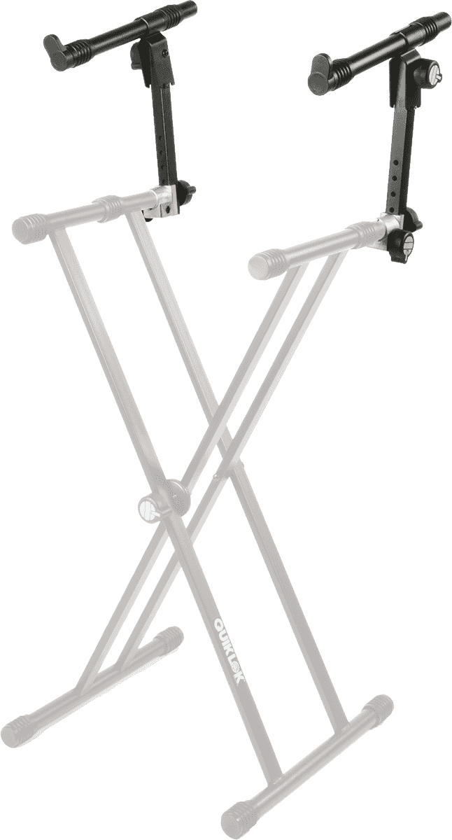 Cette flexibilité en hauteur convient aux configurations multipostes, notamment pour les claviéristes utilisant deux niveaux. Grâce à cette adaptabilité, l’extension peut s’ajuster à la hauteur principale de votre stand en X sans effort. Cela permet un agencement fonctionnel, sans compromis sur l’accessibilité des instruments.