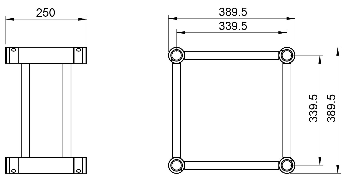 La section extérieure de 390 mm et l’entraxe de 340 mm entre les tubes assurent une cohérence avec les autres éléments de la série. Cette homogénéité facilite la réalisation de toits de scène, de cadres publicitaires, de supports d’écrans LED ou de portiques lumière et son. Grâce à sa finition noire, ce tronçon reste discret dans les environnements professionnels où l’intégration visuelle compte autant que la performance mécanique. Cela le rend pertinent pour les prestataires, installateurs et bureaux d’études.