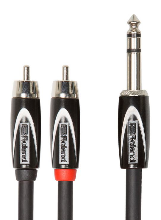 Câble professionnel Roland RCC-5-TR2R : Câble audio Jack mâle stéréo / 2 RCA mâle 1.5 mètres. Câble d'insert/splitter – jack 1/4 pouce stéréo vers 2 connecteurs RCA. Les câbles d'interconnexion de la gamme Black constituent du matériel de qualité professionnelle et de valeur exceptionnelle. Notre fil de cuivre sans oxygène multibrin et son blindage en spirale haute densité assurent une parfaite transmission du signal pour la connexion de pédales, d'instruments, de matériels de studio etc. Dotés de connecteurs haute qualité et d'une faible capacitance, ces câbles robustes vous assurent une grande fiabilité et un son de qualité supérieure pour tout type de connexion au sein de votre configuration.