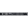 Le panneau arrière regorge de connectiques ad hoc ; 16 entrées et sorties analogiques via des connecteurs DB-25, deux entrées micro XLR, une paire de sorties TRS pour les moniteurs, des entrées/sorties S/PDIF, 16 canaux d'entrées/sorties optiques répartis sur 4 prises ADAT. Mais aussi, du Word Clock et Loop Sync E/S sur BNC et une paire de ports Ethernet pour le Dante. Rien que ça…