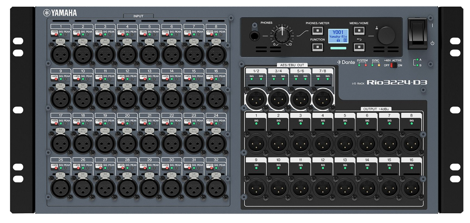 Le Yamaha Rio3224-D3 est un rack d’entrées/sorties audio conçu pour les systèmes numériques Dante comme la Yamaha DM3. Avec ses 32 entrées, 16 sorties analogiques et 8 sorties numériques AES/EBU, il garantit une configuration flexible et fiable. Doté d’une alimentation redondante et d’une prise casque intégrée, ce modèle offre une qualité sonore exceptionnelle et une grande polyvalence, idéale pour les professionnels de l’audio.