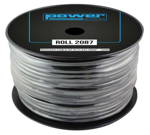 La Power Acoustics ROLL 2087 est une bobine de 100 mètres de câble haut parleur Hifi 2 x 2.5mm.