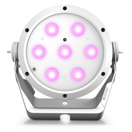 ROOT PAR 4 BLANC, CAMEO est un Projecteur PAR RGBW 7 x 4 W avec une puissant projecteur PAR à LED Quad Color 7 x 4 W offrant un flux lumineux de 1350 lm. Un éléments optiques optimisés pour une intensité lumineuse homogène. Contrôle sonor possible grâce à son microphone intégré.