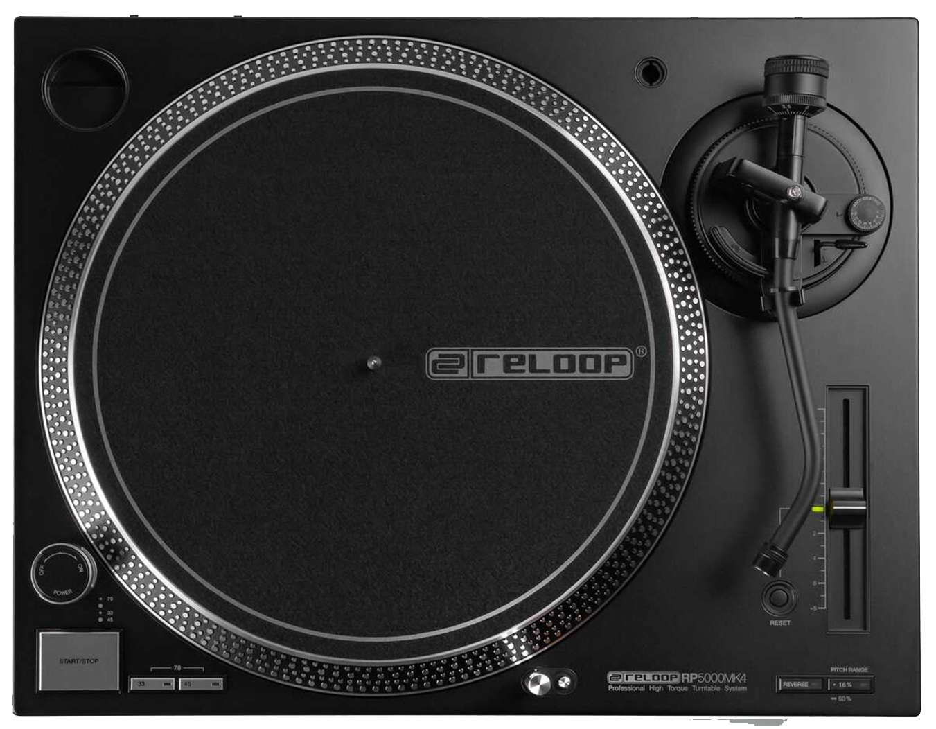 La RP-5000 MK4 propose trois plages de pitch réglables : ±8 %, ±16 % et ±50 %, offrant une grande flexibilité pour le mix et les performances créatives.