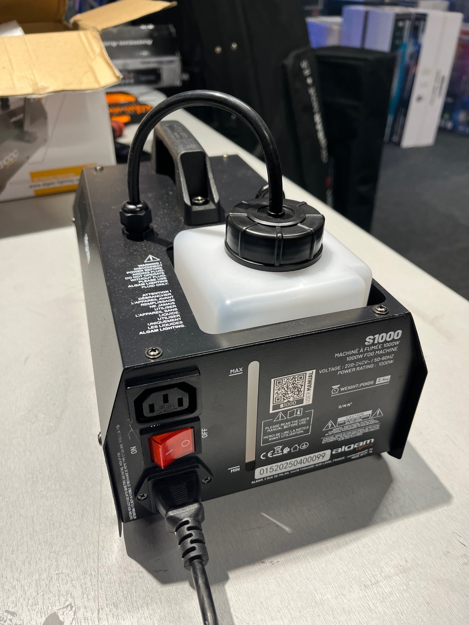 Avec un débit de 150 m³ par minute et un jet atteignant 6 mètres, la S1000 Stock B convient aux salles de taille moyenne. Elle permet de densifier rapidement l’air pour valoriser des projecteurs LED, effets lumineux ou installations DJ en intérieur.