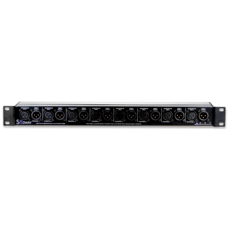 Le splitter de microphone à trois voies S8-3WAY à huit canaux est idéal pour les applications de sonorisation, d'enregistrement et de diffusion en direct, où les signaux d'entrée de niveau de ligne symétrique XLR et de microphone doivent être transmis à plusieurs emplacements de mixage. Chaque canal offre une entrée XLR, une sortie directe XLR et deux sorties XLR supplémentaires isolées par transformateur, pour un total de 3 sorties symétriques à partir de chaque signal d'entrée micro.