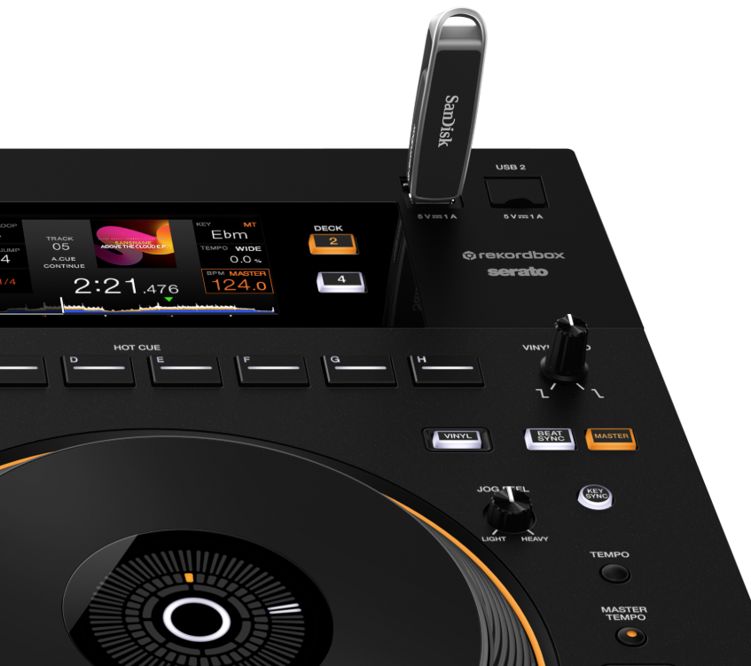 Fini les supports multiples ou disques encombrants : avec cette clé, l’ensemble de votre bibliothèque musicale vous suit en permanence, de la cabine DJ au studio.