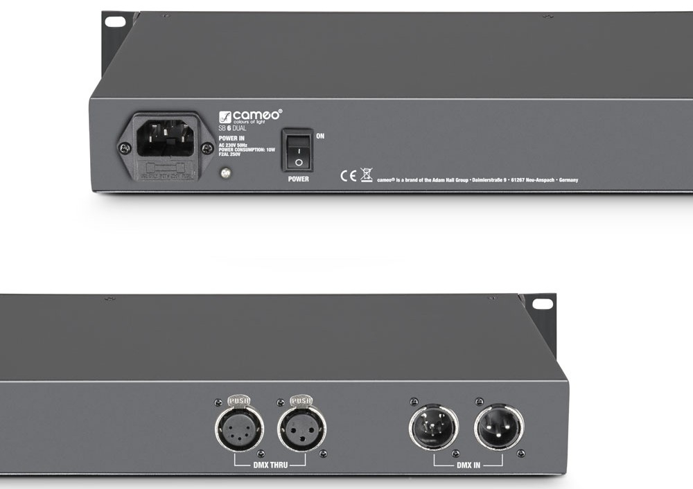 Le Cameo SB 6 DUAL dispose de voyants LED pour chaque canal, permettant de visualiser instantanément l’état du signal DMX et de l’alimentation. Ces indicateurs lumineux facilitent le diagnostic rapide en cas de problème et assurent une gestion efficace du réseau DMX en temps réel.