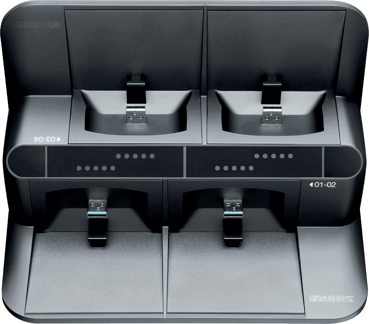 Le chargeur Shure SBC450-E permet d’atteindre environ 50 % de charge en une heure et une charge complète en trois heures. Ces performances sont adaptées aux contraintes des environnements professionnels, où les temps de rotation du matériel doivent rester courts et prévisibles.
