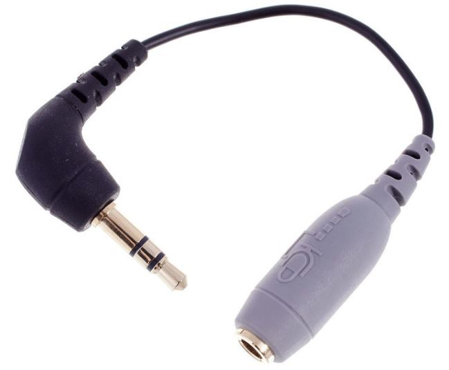 Le CÄBLE RØDE SC3 est un adaptateur blindé d'excellente qualité, conçu pour brancher un smartLav à des dispositifs TRS (3,5mm) comme une caméra ou un enregistreur audio. Les contacts plaqués or ont des codes couleurs et le gris indique l'entrée TRRS.