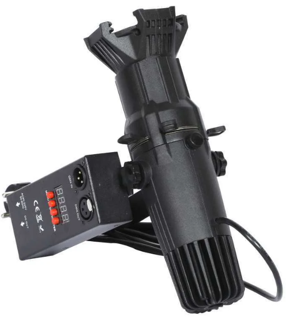 Le projecteur dispose d’un faisceau fixe de 36°, idéal pour couvrir une large zone avec une lumière homogène. Ce type de diffusion convient particulièrement aux décors scéniques, murs ou zones de présentation large sans nécessité de zoom.