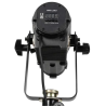 Le projecteur est compatible avec le protocole DMX512, via des connecteurs XLR 5 points. Il peut fonctionner sur 2 ou 5 canaux selon le niveau de contrôle souhaité. Cette souplesse permet une intégration rapide dans tout système de régie lumière existant.