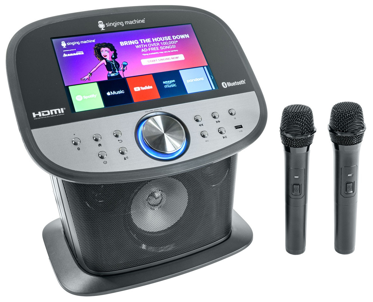 Le Karaoke Platinum - ISM9011 Singing Machine est un système karaoké qui combine enceinte, enregistreur et contrôle vocal. Grâce au wi-fi ac 2,4/5 GHz avec wpa3, il accède aux services Apple Music, Prime Music, Deezer, Spotify, SMC Karaoke et YouTube. La diffusion bluetooth et la sortie hdmi facilitent une session sur téléviseur. Ses haut-parleurs intégrés, tweeter 2 pouces et woofer 5 pouces, délivrent 54 W pour des voix lisibles. Les 22 effets vocaux et l’echo ajustent le timbre, tandis que l’enregistrement et la lecture conservent vos performances. Deux microphones sans fil et deux prises micro 6,3 mm encouragent les duos. Le port usb lit mp3/mp4 et la mémoire 4 Go de ram avec carte sd 16 Go sécurise les contenus.