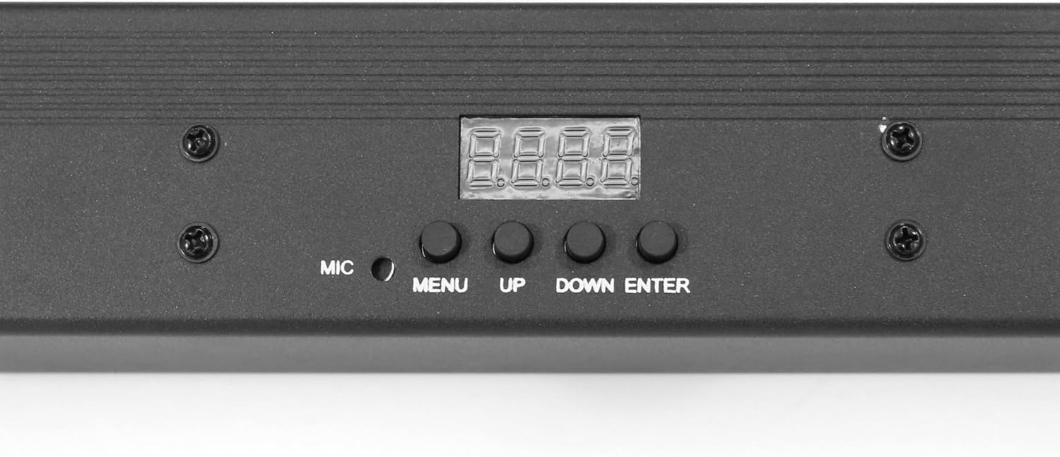 La Skybar v3 propose un mode son actif qui détecte le rythme musical et adapte les effets lumineux en conséquence. Ce fonctionnement intuitif est particulièrement utile pour les DJ, musiciens live ou installations sans technicien lumière. En plus du mode musical, plusieurs programmes automatiques sont inclus, offrant des enchaînements de couleurs, fondus et effets dynamiques préconfigurés.