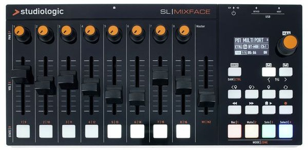 Le Studiologic SL Mixface est un contrôleur MIDI USB compact conçu pour les musiciens et producteurs recherchant mobilité et contrôle avancé. Pensé pour une utilisation nomade ou en studio, il combine une connectivité étendue avec une prise en main immédiate. Grâce à son mode DAW et son mode contrôle, il permet de piloter aussi bien les logiciels de production que les instruments virtuels. Son écran OLED facilite la navigation, tandis que les faders, boutons et encodeurs offrent un accès direct au mixage et aux paramètres sonores. Compatible avec les principaux DAW comme Ableton Live, Logic Pro ou Cubase, il s’intègre naturellement dans tout environnement de création musicale. Alimenté par USB ou piles AAA, le SL Mixface assure une liberté d’utilisation totale, en studio comme sur scène.