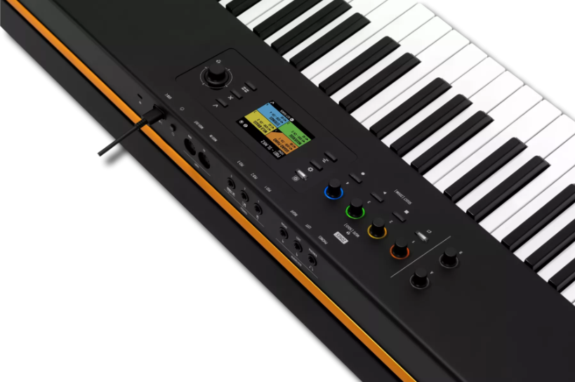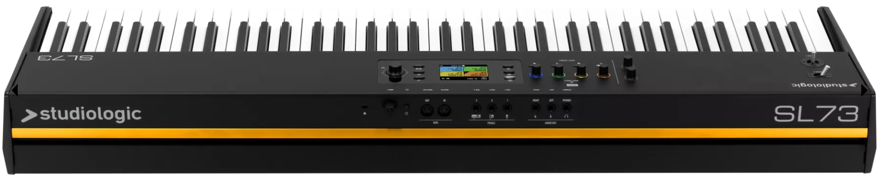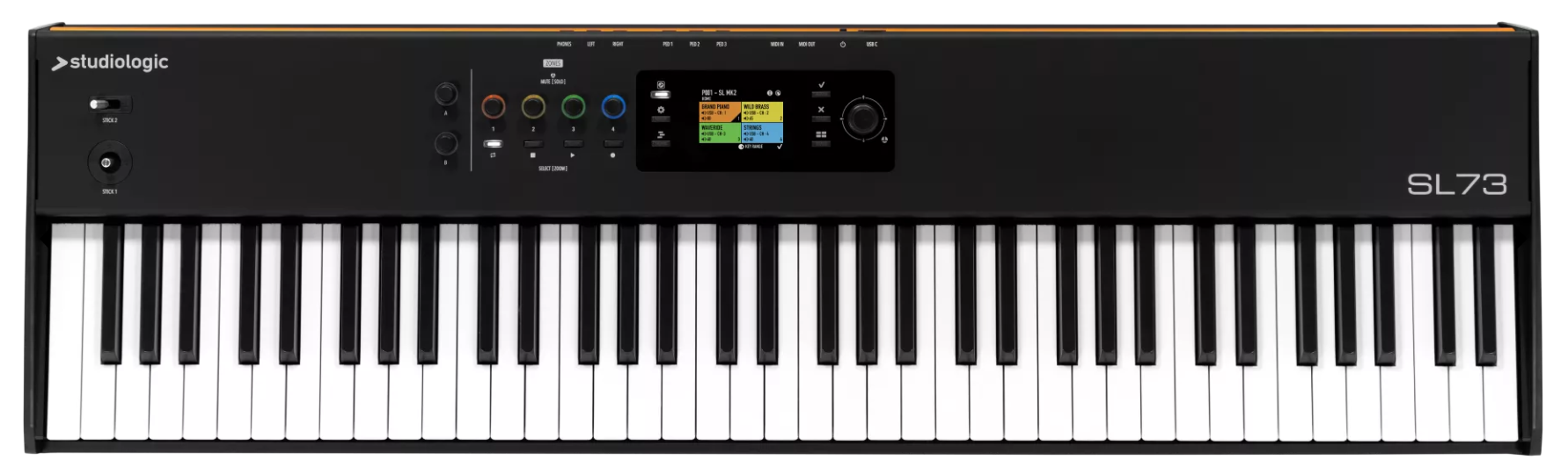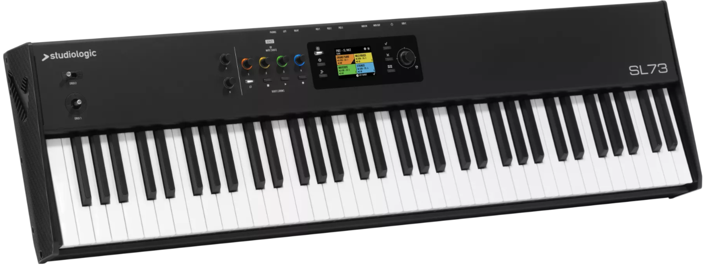 Grâce à son interface audio USB-C intégrée, le SL73 MK2 permet de transmettre audio et MIDI via une seule connexion. Les sorties audio jack 6,3 mm et la sortie casque facilitent l’utilisation en home studio ou sur scène.