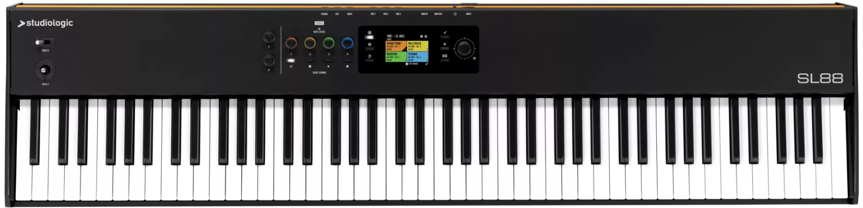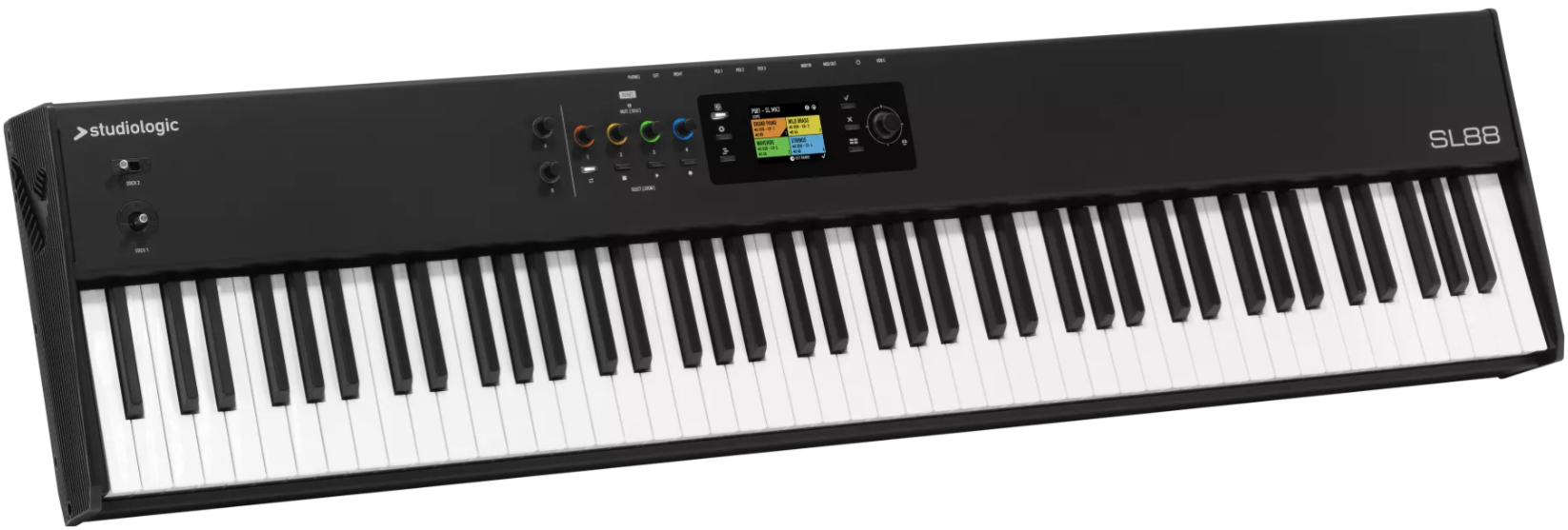 L’interface UX Logic du SL88 MK2 reprend les principes introduits sur la série Numa X Piano. Le panneau de contrôle moderne, associé à un écran LCD 2,8 pouces, permet une navigation claire entre programmes, zones et paramètres MIDI. Les encodeurs par zones facilitent l’édition rapide en situation de studio ou de scène.