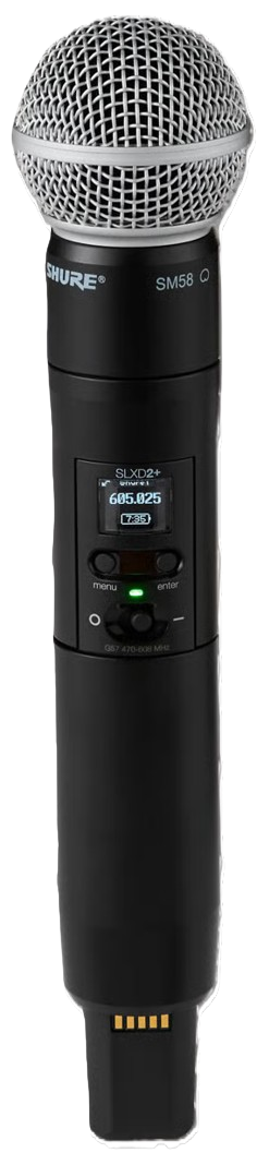 Le système sans fil Shure SLXD24D+/58 utilise une transmission audionumérique 24 bits permettant de transmettre la voix captée par les microphones SM58 vers le récepteur SLXD4D+. Le signal est transmis en UHF avec gestion automatique des fréquences afin de limiter les interférences RF. La capsule dynamique cardioïde du SM58 réduit les bruits ambiants et améliore l’intelligibilité vocale. Ce système est couramment utilisé pour concerts, conférences ou événements. Grâce au contrôle ShowLink Ease et au logiciel Wireless Workbench, les techniciens peuvent surveiller le signal RF et ajuster les paramètres rapidement.