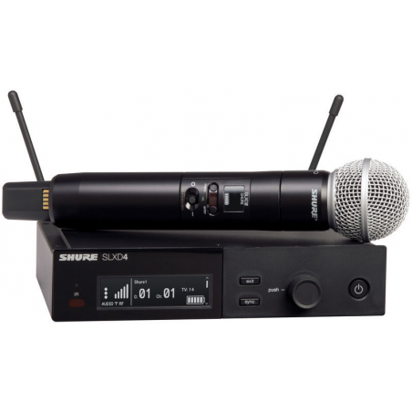 Le système est livré avec un récepteur SLXD4, un microphone à main SLXD2/SM58, les antennes et accessoires de montage en rack ainsi que 2 piles AA.