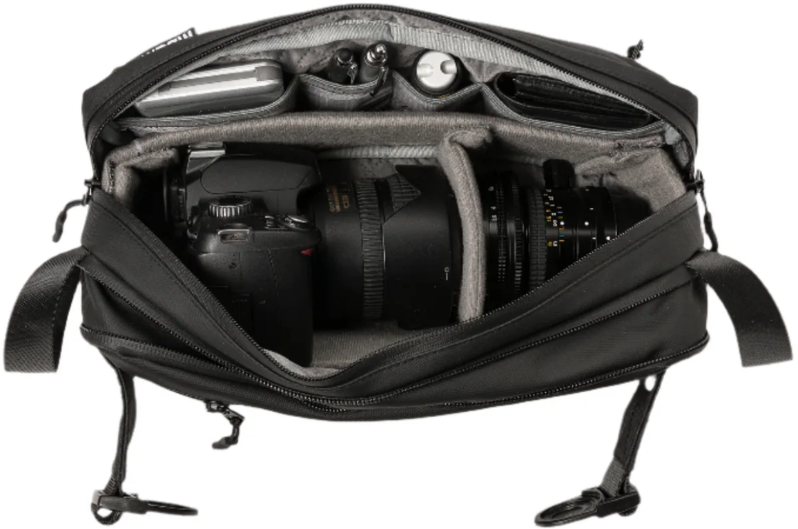 Les sangles réglables permettent de fixer un trépied, une veste ou d’autres équipements légers. Cette fonctionnalité renforce la polyvalence du sac lors des déplacements urbains ou des événements.