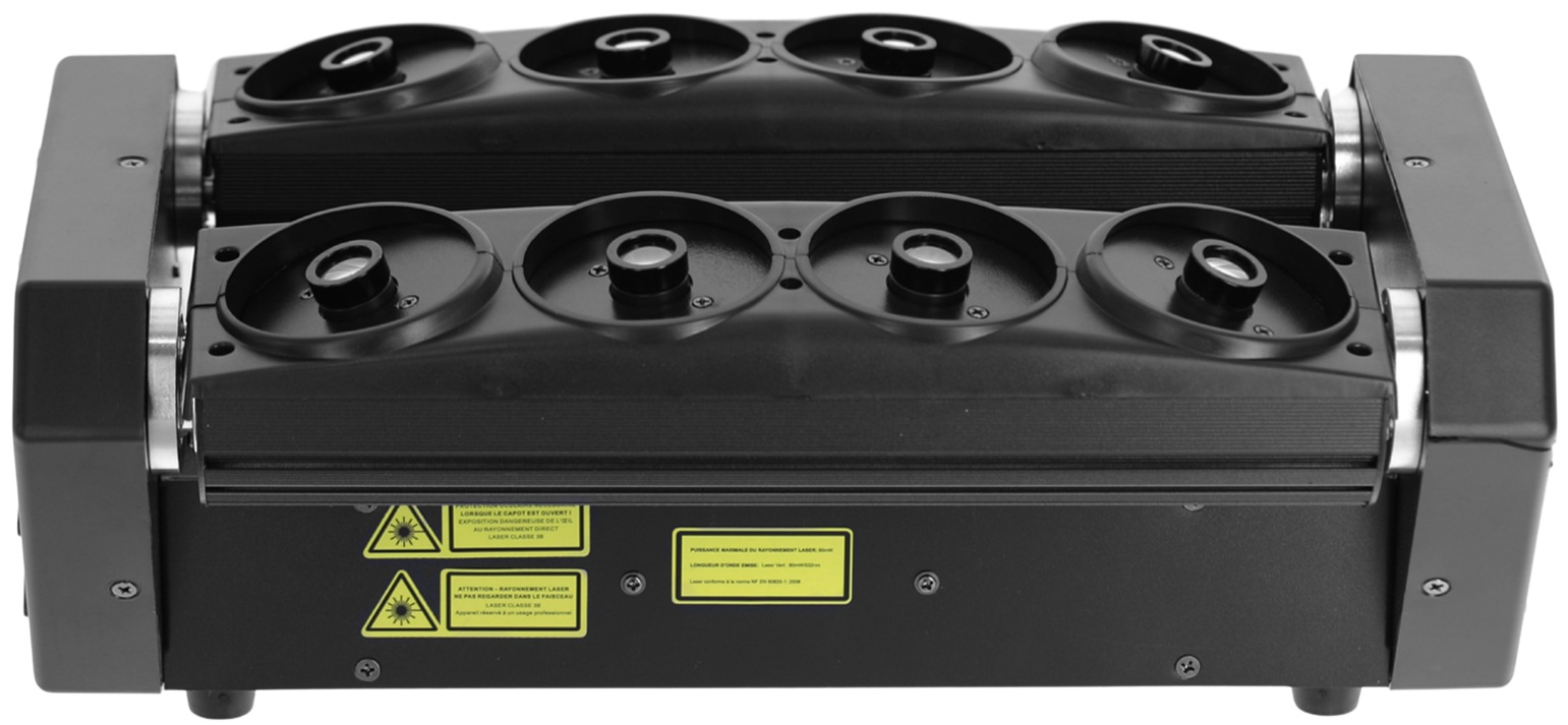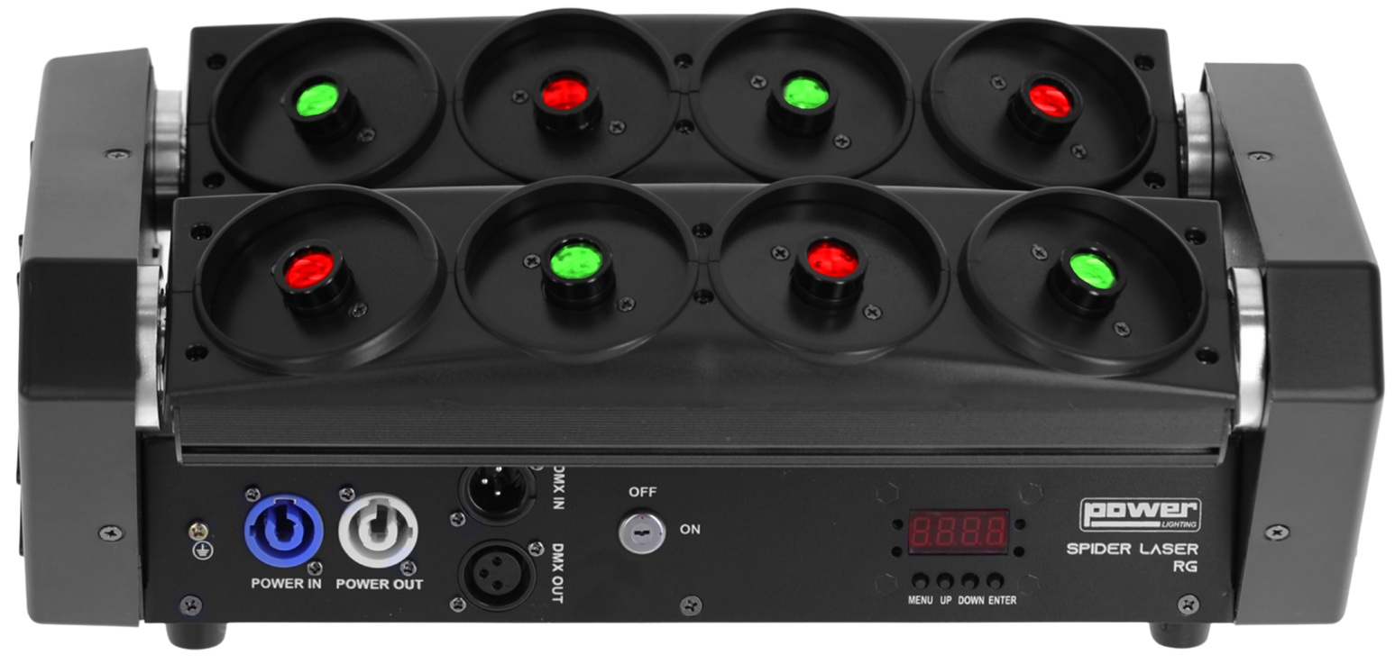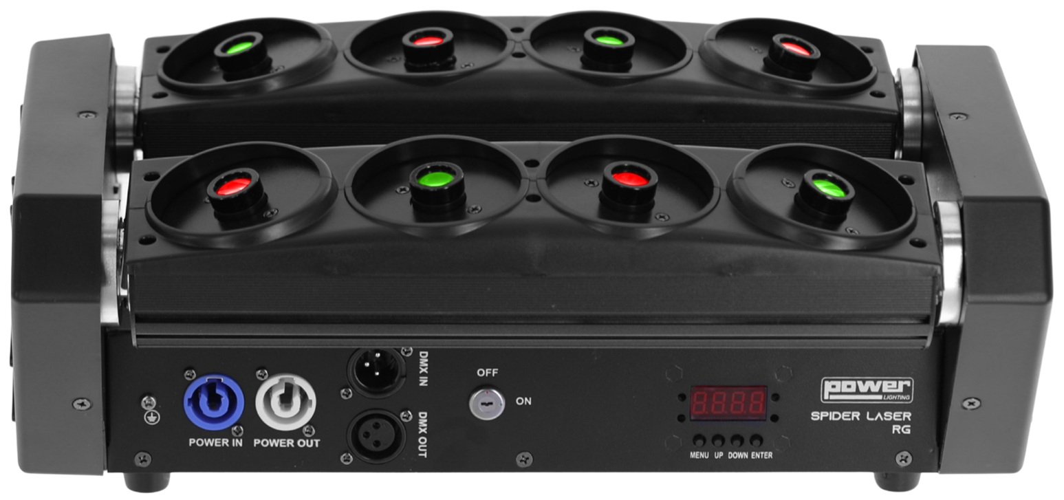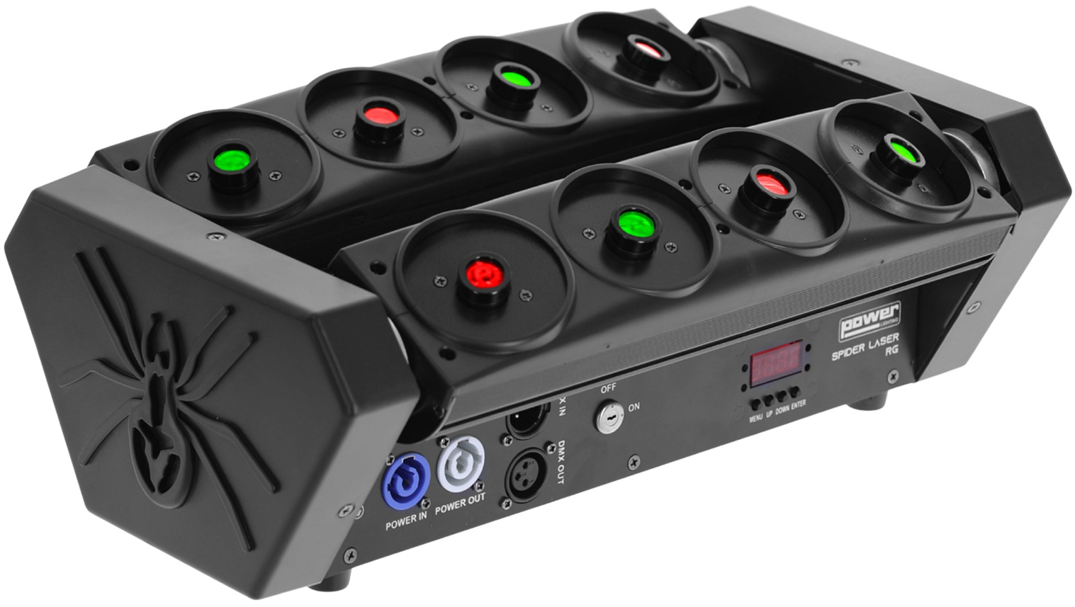 Le SPIDER LASER RG de Power Lighting se distingue par ses 8 faisceaux laser rouges et verts synchronisés dans deux barres rotatives. Cette configuration unique permet des effets croisés, en éventail ou en rafale pour une mise en scène lumineuse saisissante. Idéal pour les professionnels cherchant un laser de scène créatif et percutant.