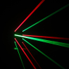 Il produit des faisceaux rouges et verts puissants via deux barres rotatives. Les effets incluent croisements, éventails, stroboscopie et projections dynamiques parfaitement visibles dans la fumée ou sur fond sombre.