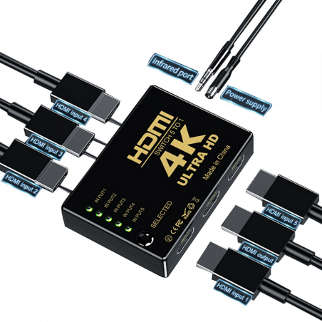 Ce commutateur HDMI 5 ports Power Studio permet de brancher 5 appareils sur un seul et même boitier, et disposer d’une sortie commune, jusqu'en 4k.