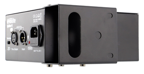 Le splitter DMX Evolite intègre un fusible F 1 A / 250 V PTC assurant une protection interne contre les surtensions ou les surcharges. Ce système réduit les risques de panne et prolonge la durée de vie du matériel. Ce type de protection est particulièrement recherché dans les environnements où les coupures ou hausses de tension sont fréquentes.