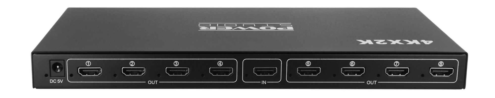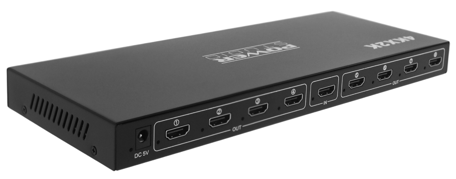 Un splitter HDMI 1x8 a pour mission de distribuer un signal sur plusieurs sorties, ce qui peut solliciter davantage l’électronique interne dès lors que plusieurs écrans sont connectés. Le Power Studio SPLITTER HDMI 1X8 4K est fourni avec un adaptateur secteur, ce qui permet d’alimenter le boîtier de manière dédiée plutôt que de dépendre uniquement de la source. Cette alimentation externe aide à maintenir une diffusion stable et fiable lorsque l’on utilise plusieurs téléviseurs ou moniteurs simultanément.