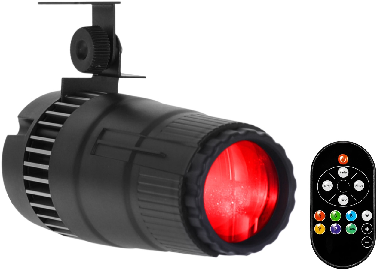 La simplicité d'utilisation offerte par la télécommande IR renforce l’attrait de ce spot pour l’événementiel léger et les utilisateurs souhaitant un produit prêt à l'emploi dès la sortie de la boîte.